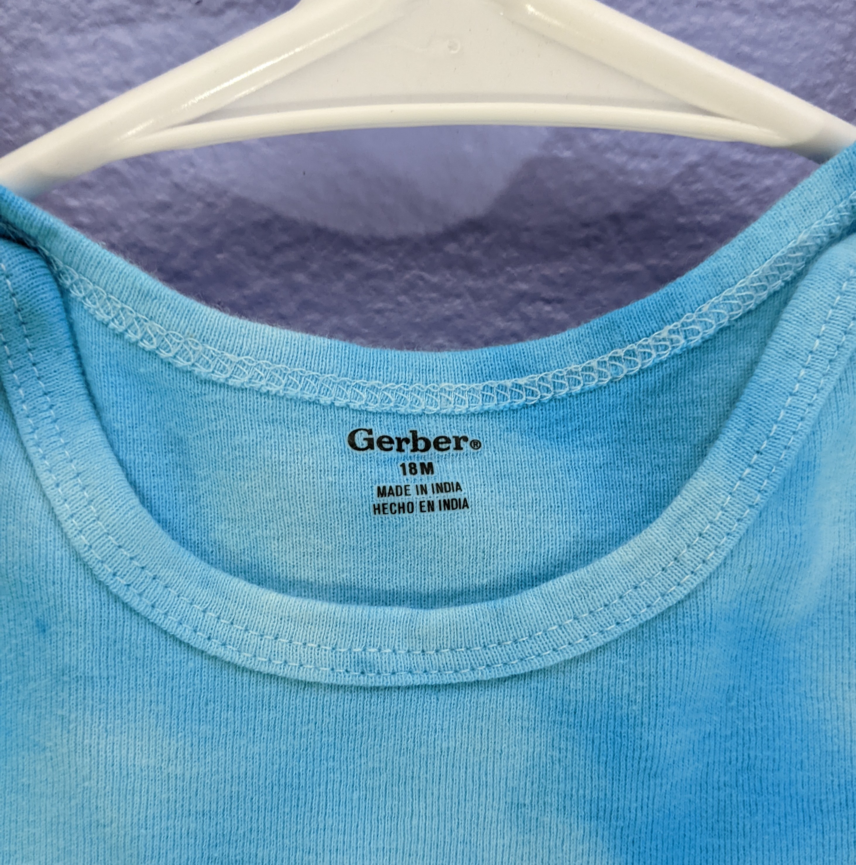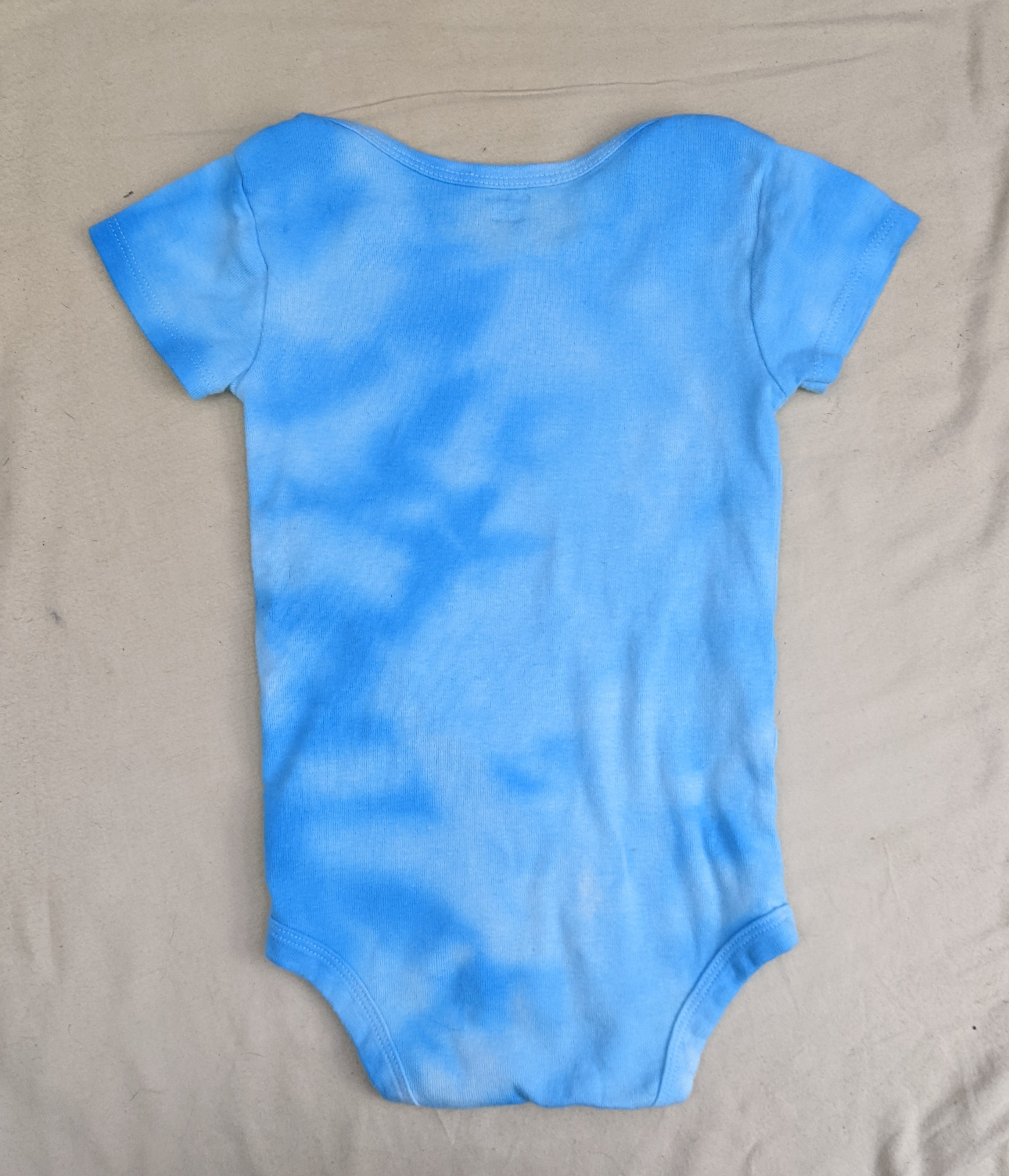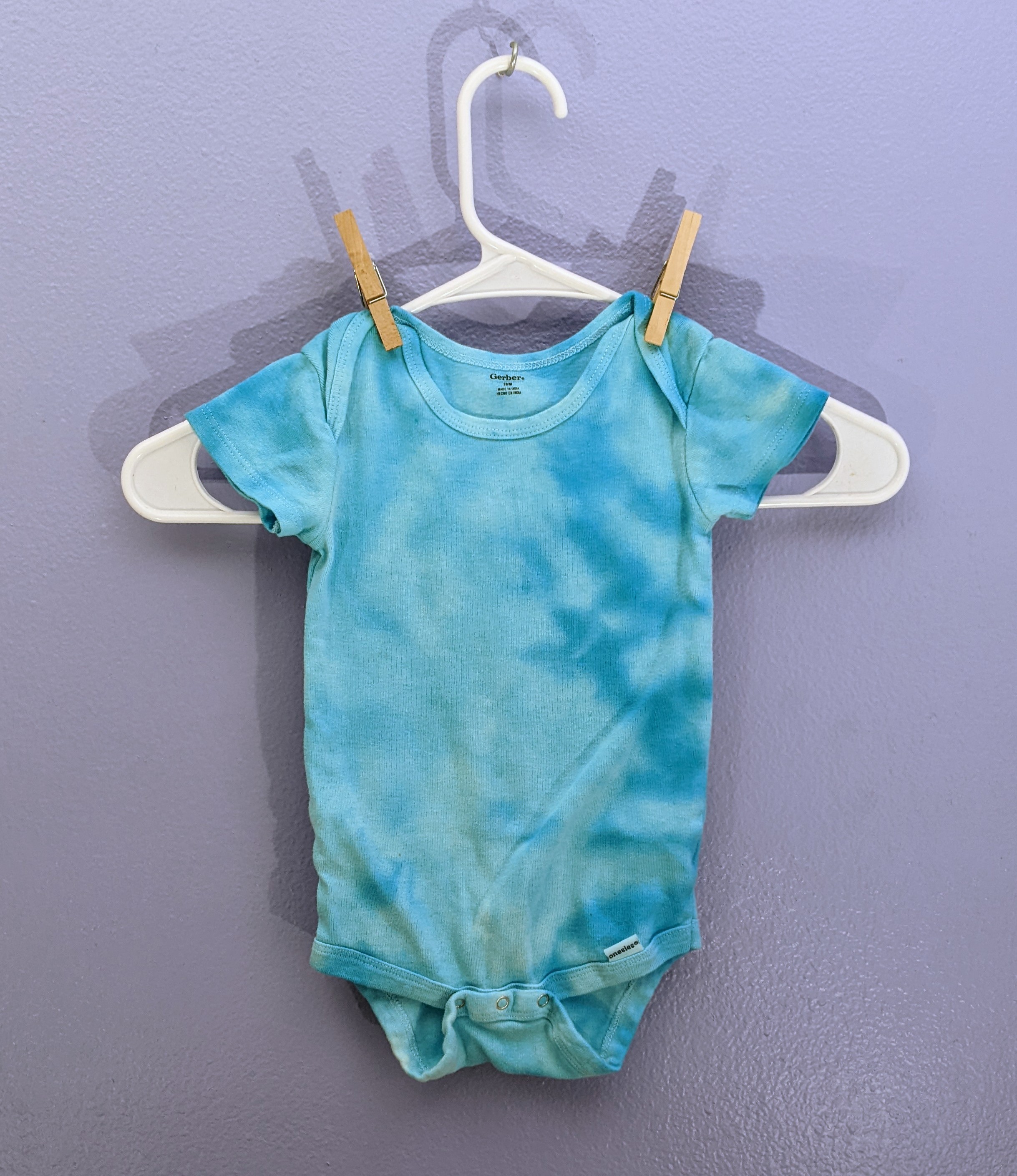 I purchased this bodysuit at a resale store, washed it, and then hand dyed it. Washed it again and dried it in the dryer.
