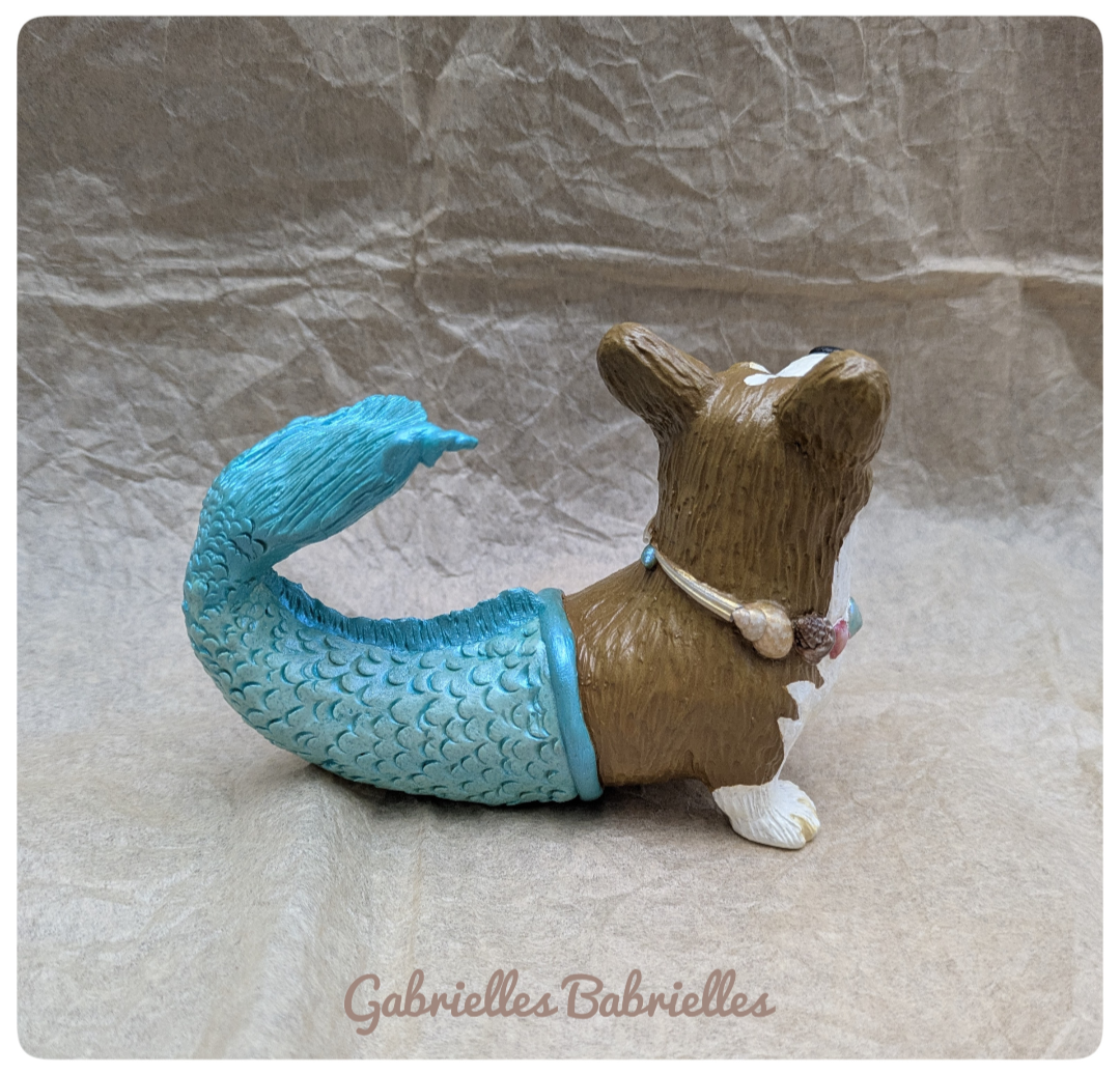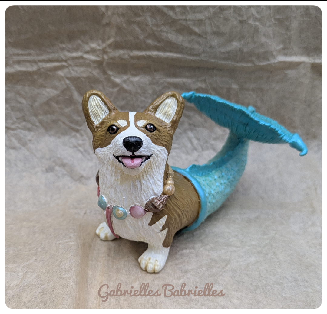 Bring Coralee the Corgi Mermaid home today for a whimsical addition to your collection.