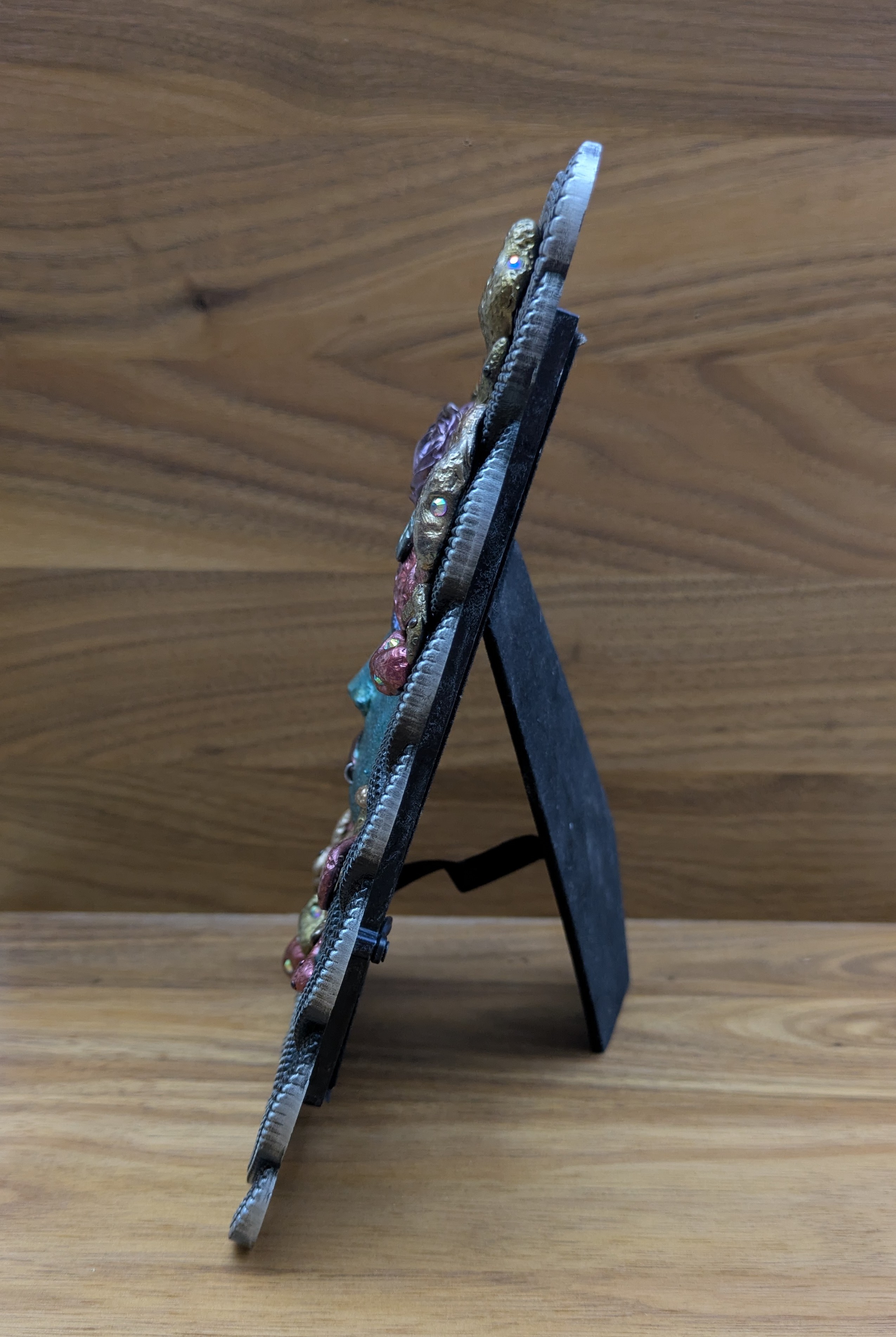 I hand sculpted this Medusa portrait from polymer clay and colored her in with Pearlex micah powders.