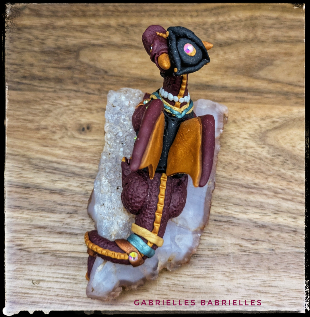š“āā ļø Bartleby is hand sculpted entirely from polymer clay directly onto the beautiful chunk of pink crystal. He is adorned with several shimmery glass gems.